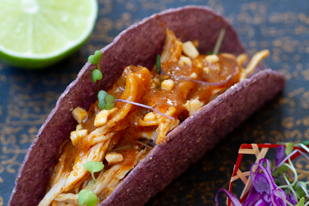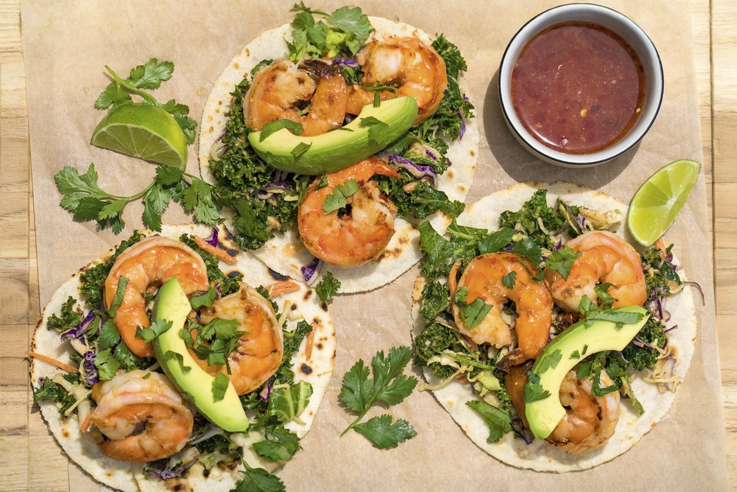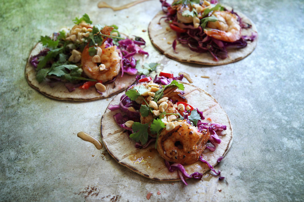 SPICY MANBA PHANOR PEANUT SHRIMP TACOS