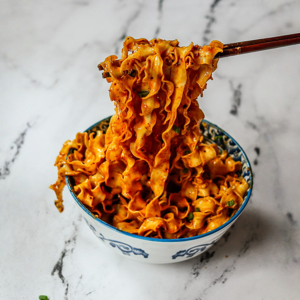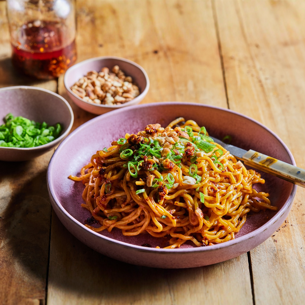 Description: Silky noodles coated in bold, spicy Manba Phanor peanut butter with a sweet-savory kick and lingering heat.
